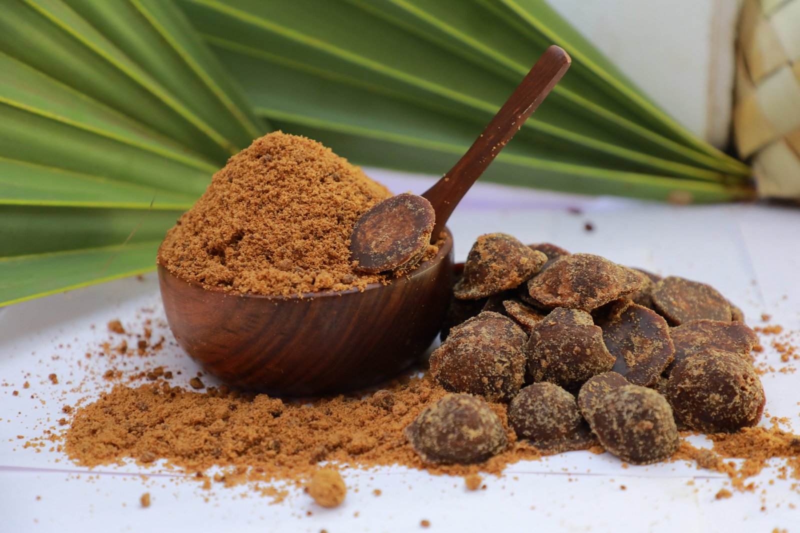 ताड़ गुड़ (Palm Jaggery) को छोटे टुकड़ों में तोड़कर इस पाउडर में मिलाएं।